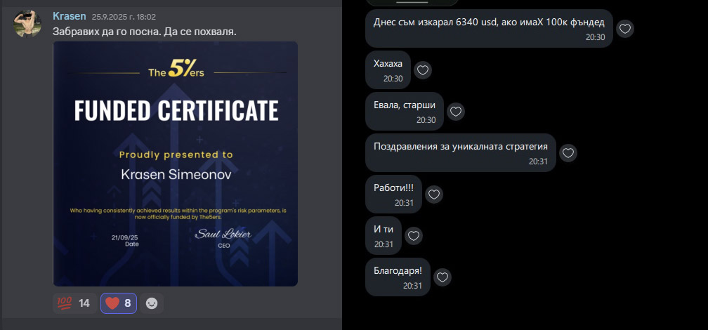 Съдържанието на този уебсайт, включително всички текстове, изображения, материали, рекламни съобщения и описания на курсове или стратегии, е предоставено единствено с образователна и информационна цел. Нищо от публикуваното не представлява и не следва да се тълкува като индивидуален инвестиционен съвет, финансовa препоръка, покана за покупка или продажба на финансови инструменти, оферта или обещание за печалба.